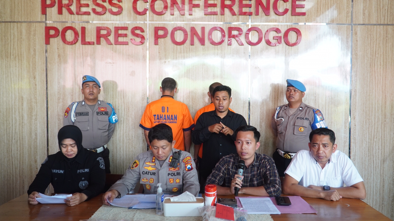 “Untuk tersangka ada dua yaitu berinisial R dan M. Tersangka R berdomisili di Madiun dan M berdomisili di Ponorogo,” Kata Kasat Reskrim Polre Ponorogo AKP Nikolas Bagas Saat Press Release, Rabu (25/01/2023)