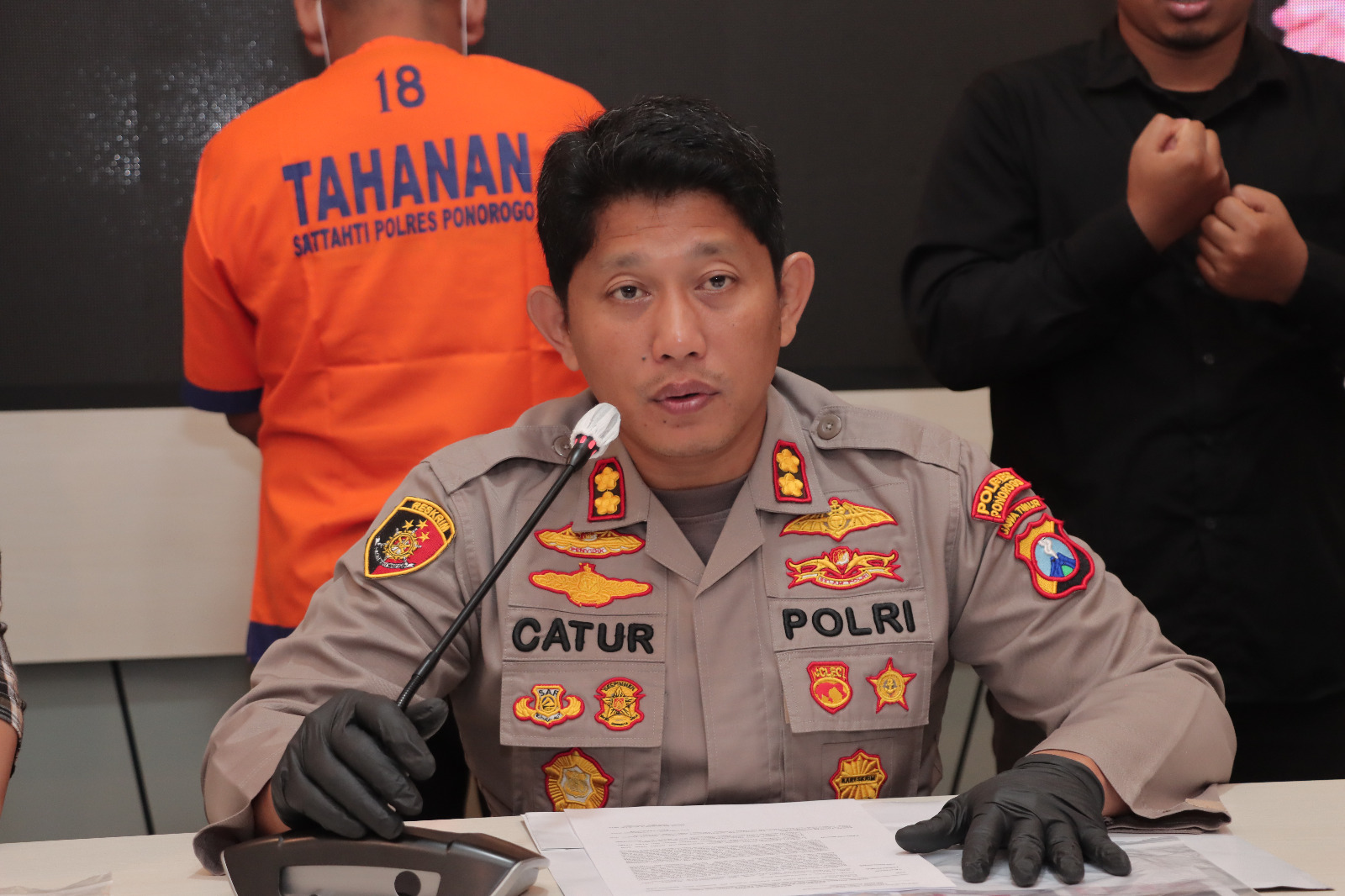 Kapolres Ponorogo AKBP Catur C. Wibowo, S.I.K., M.H. menyampaikan bahwa tersangka yang berinisial EN warga Kecamatan Sampung Kabupaten Ponorogo melakukan penipuan atau Penggelapan terkait jual beli kendraan roda empat jenis Truk.