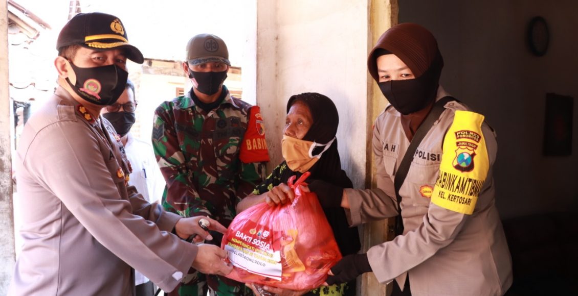 Kapolres Ponorogo AKBP Mochamad Nur Azis, S.H., S.I.K., M.Si hari ini memberikan bantuan kepada masyarakat berupa 15 paket sembako dan masker yang pertama bertempat di Jln. Stadion Timur dan Jln. Cindewilis Kelurahan Kertosari Kecamatan, jumlah penerima bantuan sebanyak 4 orang dan 5 orang, dan di Jln. Soekarno Hatta Gg IV RT 02 RW 02 Kel. Banyudono Kec/Kab. Ponorogo, adapun jumlah penerima bantuan sebanyak 6 orang.