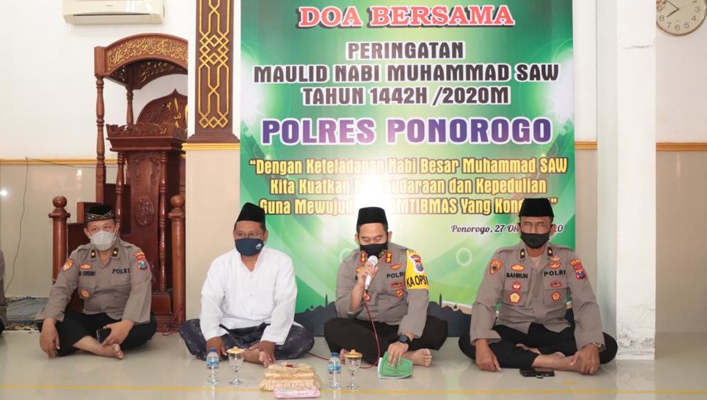 PONOROGO,IKAGAWANEWS.ID – Kepolisian Resor Ponorogo gelar Doa Bersama Peringatan Maulid Nabi Muhammad S.A.W. tahun 1442H/2020M bertempat di Masjid Uswatun Hasannah Polres Ponorogo. Selasa (26/10)