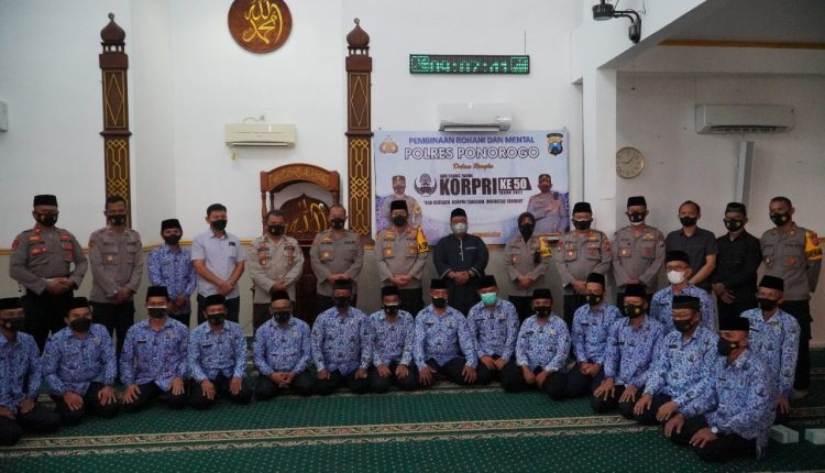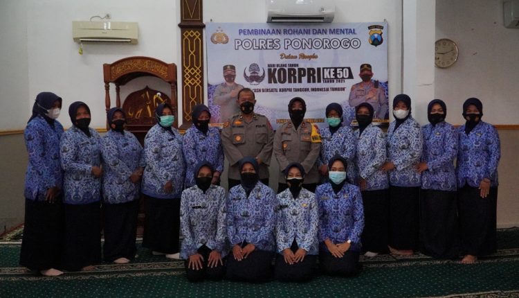 PONOROGO,ikagawanews.id– Dalam Rangka Hut Korpri Ke 50 TA. 2021, Polres Ponorogo melaksanakan kegiatan Pembinaan rohani dan mental dengan tema “ASN Bersatu, Korpri Tangguh, Indonesia Tumbuh” bertempat di masjid uswatun khasanah Polres Ponorogo, Kamis (18/11)