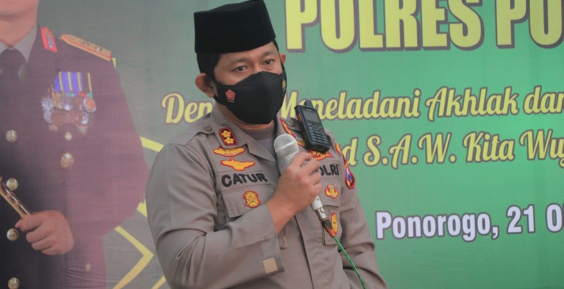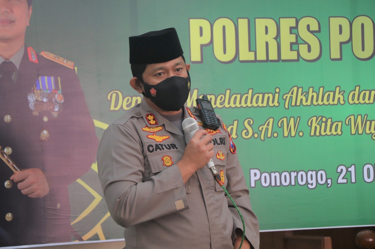 Hal tersebut disampaikan Kapolres Ponorogo AKBP Catur C. Wibowo, S.I.K., M.H. dalam sambutannya pada acara Maulid Nabi Muhammad Saw.