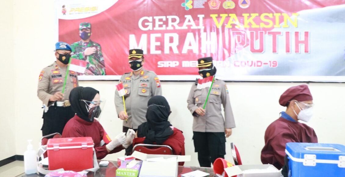 PONOROGO,IKAGAWANEWS.ID –  Polres Ponorogo menggelar vaksinasi Goes to Campus di Gerai Vaksin Merah Putih TNI – POLRI bertempat di Aula Polres Ponorogo , Minggu (08/8/2021).
