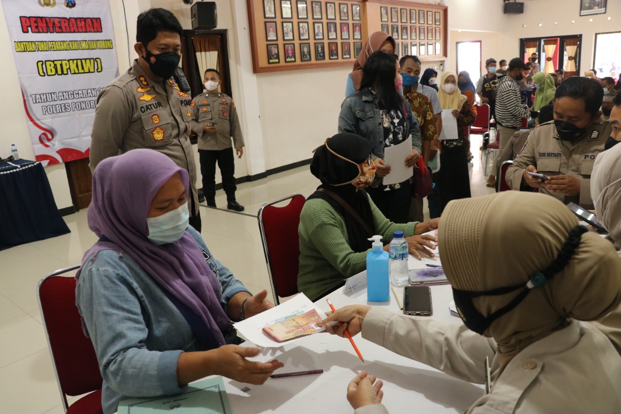 Kapolres Ponorogo AKBP Catur C. Wibowo, S.I.K., M.H.menyampaikan Polres Ponorogo akan membantu pemerintah untuk menyalurkan BTPKLW dengan target kepada 3500 pedagang kecil dan ditargetkan awal November bantuan harus sudah tersalurkan dan hari ini adalah penyaluran yang kali ke 4 sejak bulan September kemarin.