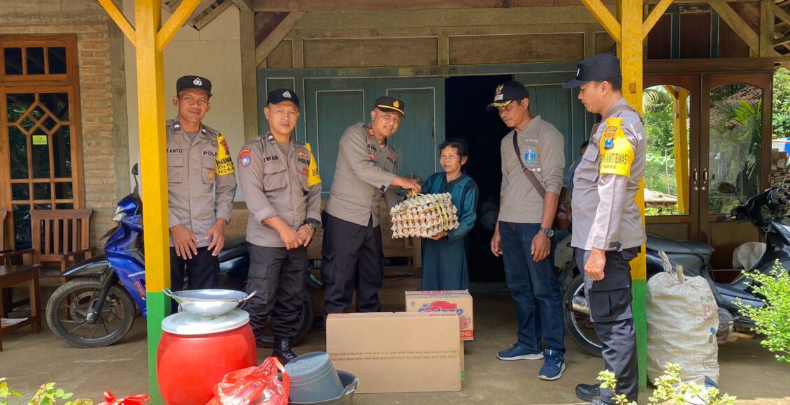 Kapolsek Sawoo AKP Joko Suseno kemudian menyerahkan bantuan dari Kapolres Ponorogo AKBP Catur C. Wibowo, S.I.K., M.H kepada Bu Suratin. Bantuan tersebut berupa seperangkat alat dapur dan sembako.