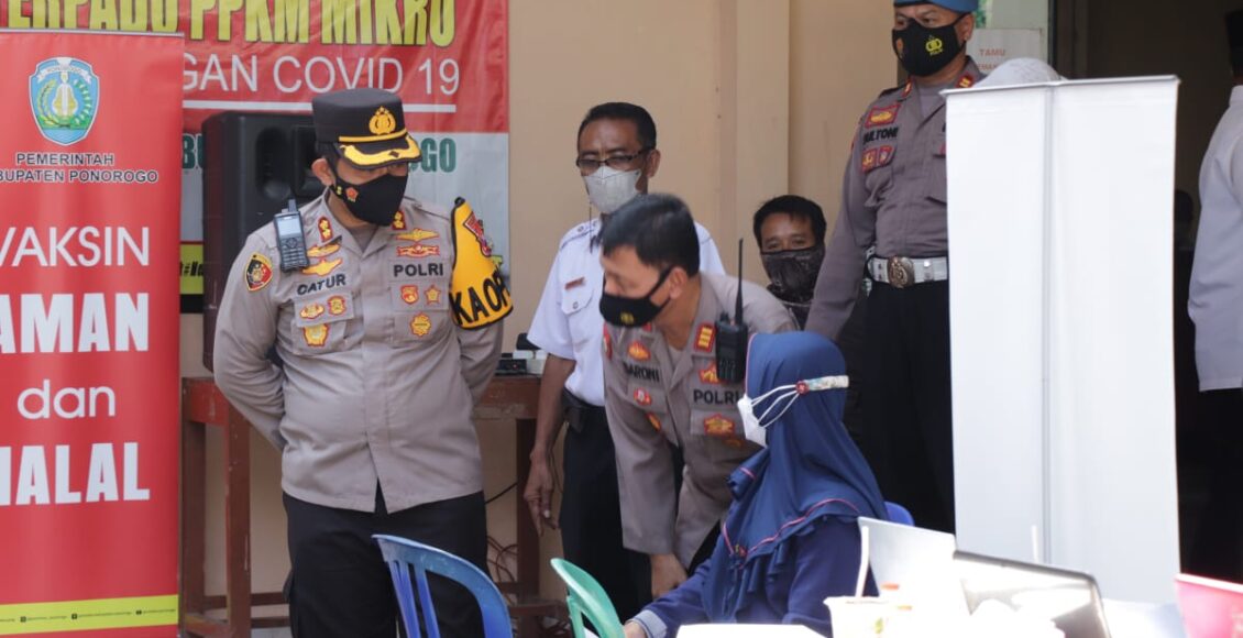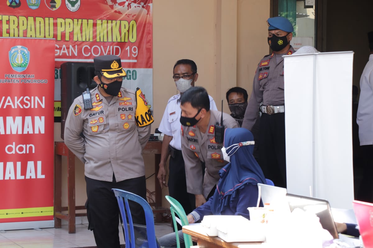 Hadir dalam giat tersebut adalah Kapolres Ponorogo AKBP Catur Cahyono Wibowo.,SIK.,MH.,beserta PJU juga Kepala Puskesmas dan petugas vaksinator dari Urkes Dinkes dan Puskesmas Mlarak.