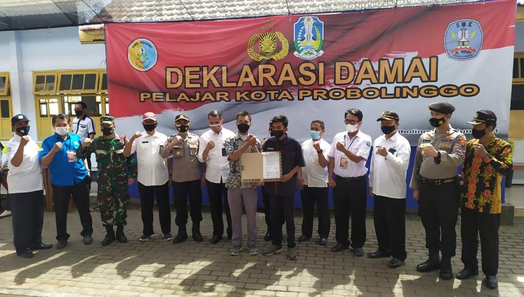 Probolinggo Kota,IKAGAWANEWS.ID – Kepala Kepolisian Resort (Kapolres) Probolinggo Kota AKBP Raden Muhammad Jauhari, S.H., S.I.K., M.Si melalui Kasat Binmas Polres Probolinggo Kota AKP Retno Utami S.H menghadiri upacara deklarasi damai Siswa-siswi SMK A. YANI  Kota Probolinggo,di halaman Parkir SMK A. YANI Kampus 2 Kota Probolinggo, Rabu 09 Juni 2021.