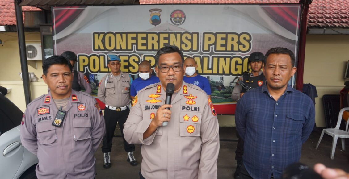 Disampaikan bahwa pelaku yang berhasil diamankan sejumlah dua orang yaitu MN (42) warga Kecamatan Padamara dan AD warga Kecamatan Kalimanah. Sedangkan dua pelaku masih dalam pencarian dan pengejaran.