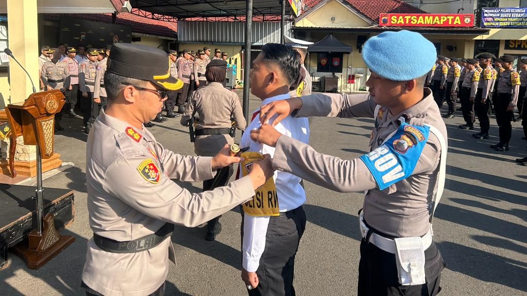 Apel Gelar Polisi RW Polres Purbalingga ditandai dengan pemasangan ban lengan bertuliskan Polisi RW. Pemasangan secara simbolis dilakukan oleh Kapolres Purbalingga kepada perwakilan personel. Selanjutnya ban lengan akan dipakai saat personel melaksanakan tugas sebagai Polisi RW di wilayah masing-masing. (Humas Polres Purbalingga)