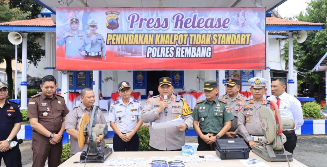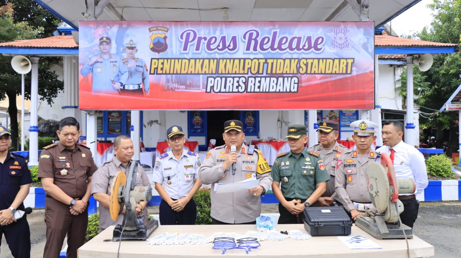 Polres Rembang bakal terus melakukan sosialisasi, edukasi dan penindakan humanis terhadap masyarakat yang masih menggunakan knalpot brong. Penindakan tegas sanksi tilang sendiri akan diberikan berdasarkan ETLE dan Handheld.(Humas Polres Rembang)
