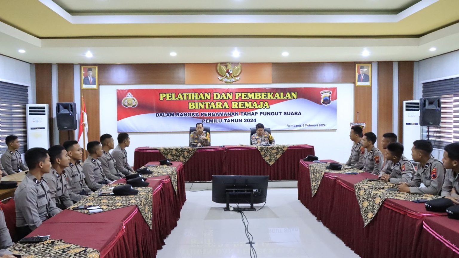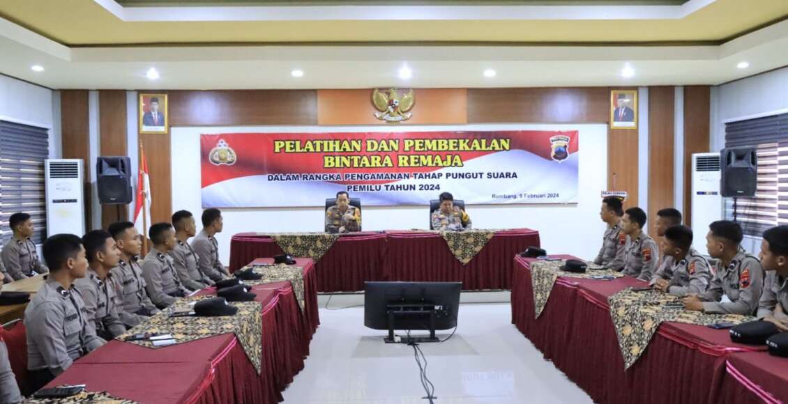 Polres Rembang Gelar Pelatihan & Pembekalan Kepada Bintara Remaja Dalam Rangka Tahap Pungut Suara Pemilu 2024