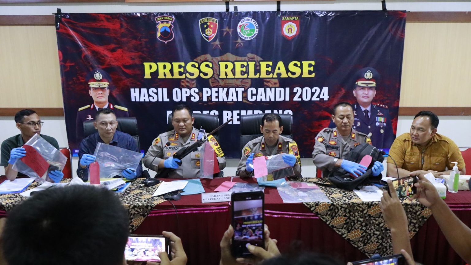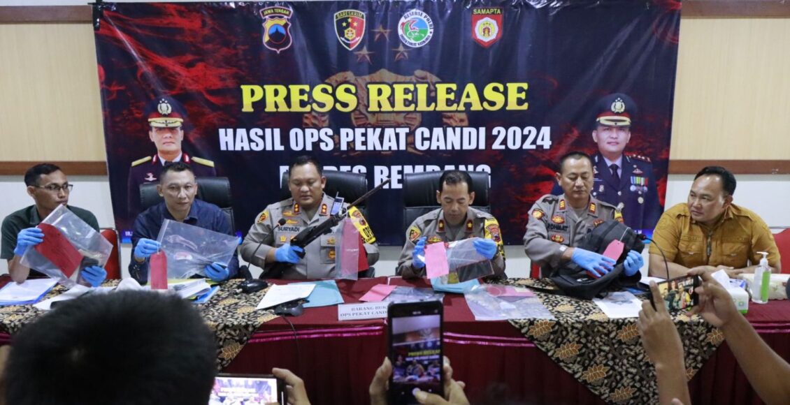Polres Rembang Gelar Pers Release Ops Pekat Candi 2024 Ungkap Kepemilikan Senjata Api Rakitan