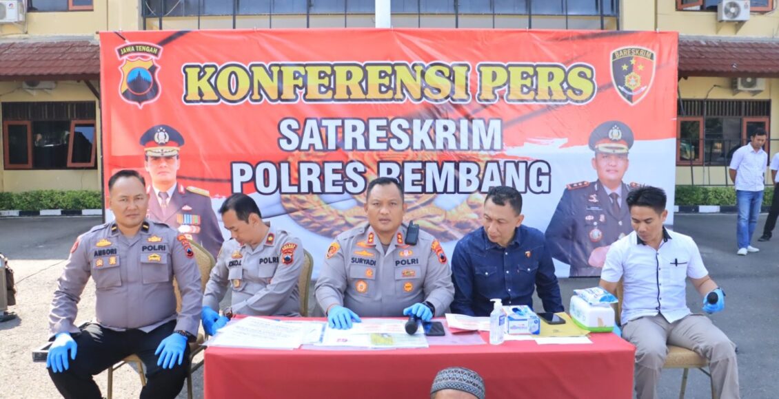 Kapolres Rembang AKBP Suryadi, S.I.K.,M.H. menjelaskan, atas kasus tersebut tim Sat Reskrim Polres Rembang menetapkan inisial Y (51) warga Desa Banowan, Kecamatan Sarang, Rembang.