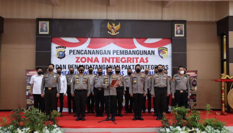 Polres Rokan Hilir Giat Pencanangan Pembangunan Zona Integritas Menuju Wilayah Bebas Korupsi (WBK) Dan Wilayah Birokrasi Bersih Dan melayani (WBBM)