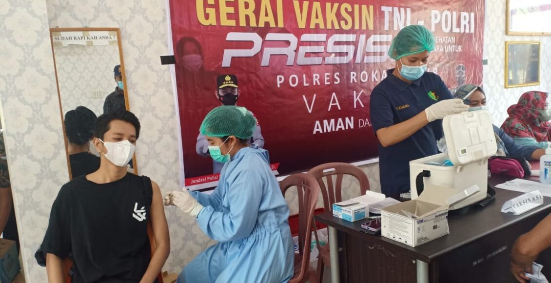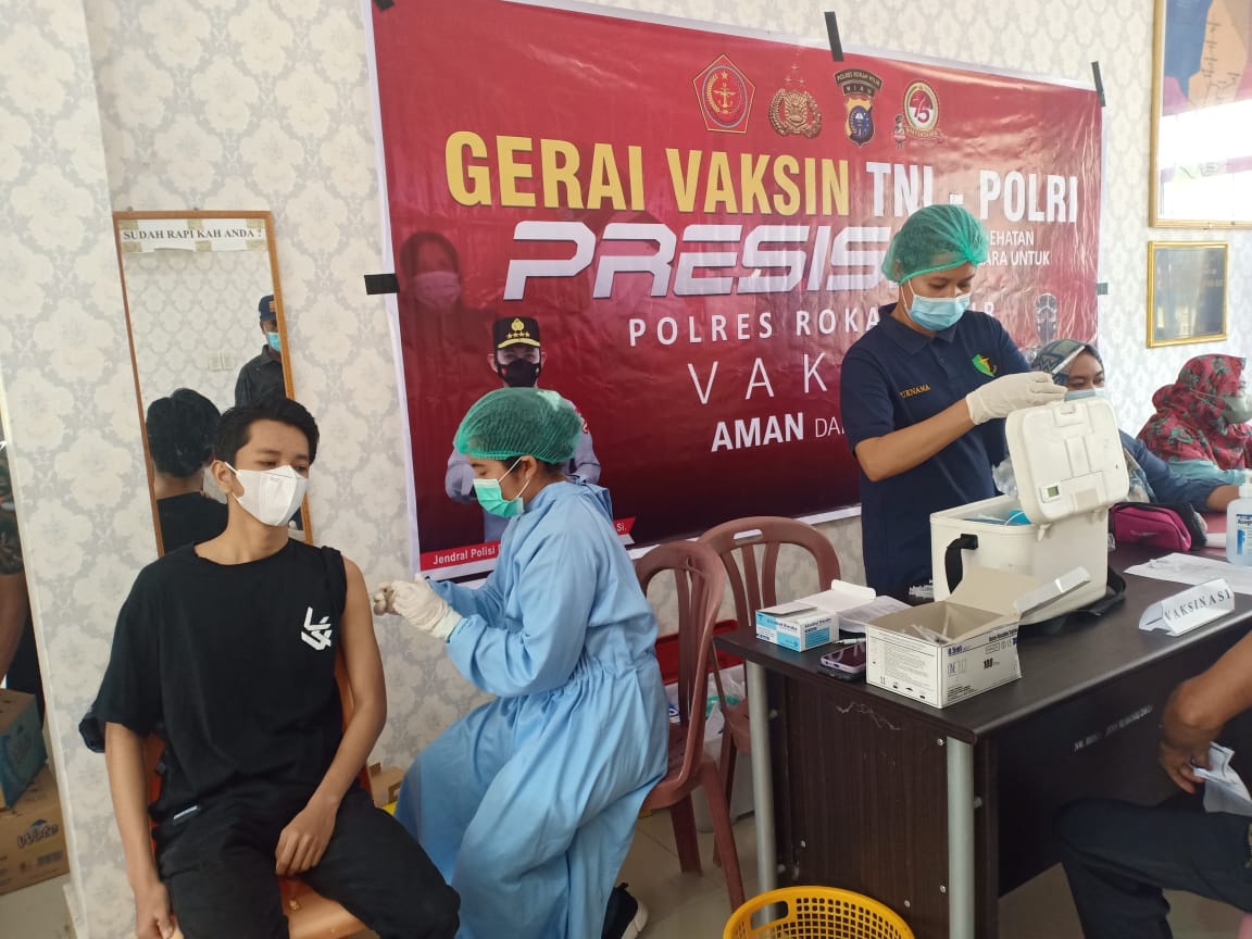 Kapolres Rokan hilir AKBP Nurhadi Ismanto SH SIK yang dikonfirmasi Sabtu (14/8) melalui kasubbag Humas polres Rokan hilir AKP Juliandi SH mengatakan dalam kegiatan tersebut sebanyak 322 melakukan vaksinasi.