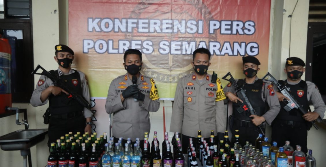 SEMARANG,Ikagawanews.id – Pemberantasan minuman keras (miras) di wilayah hukum Kabupaten Semarang terus dilakukan. Terbukti, sebanyak 2.635 botol miras berbagai merek, 1.926 liter Tuak dan 48 Buah Knalpot tidak standart disita Polres Semarang, Rabu (30/12/2020). Miras tersebut merupakan hasil pengungkapan yang dilakukan oleh pihak Polres Semarang selama Operasi Lilin Candi 2020.