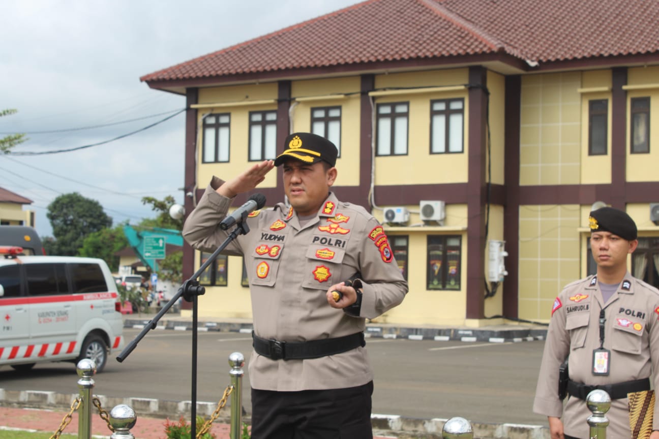 Kapolres Serang AKBP Yudha Satria dalam arahanya saat mengambil Apel Gelar Pasukan mengatakan dengan adanya apel gelar pasukan ini sebagai sarana untuk pengecekan penanggulangan bencana bertujuan untuk menciptakan situasi aman dan kondusif ujar Kapolres Serang.