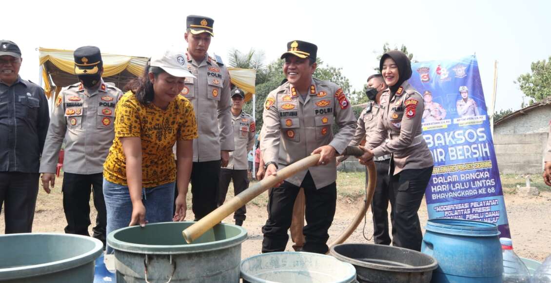 Polres Serang Laksanakan Bhakti Sosial Penyaluran Air Bersih Dampak Kemarau Panjang Kepada Warga Nasyarakat