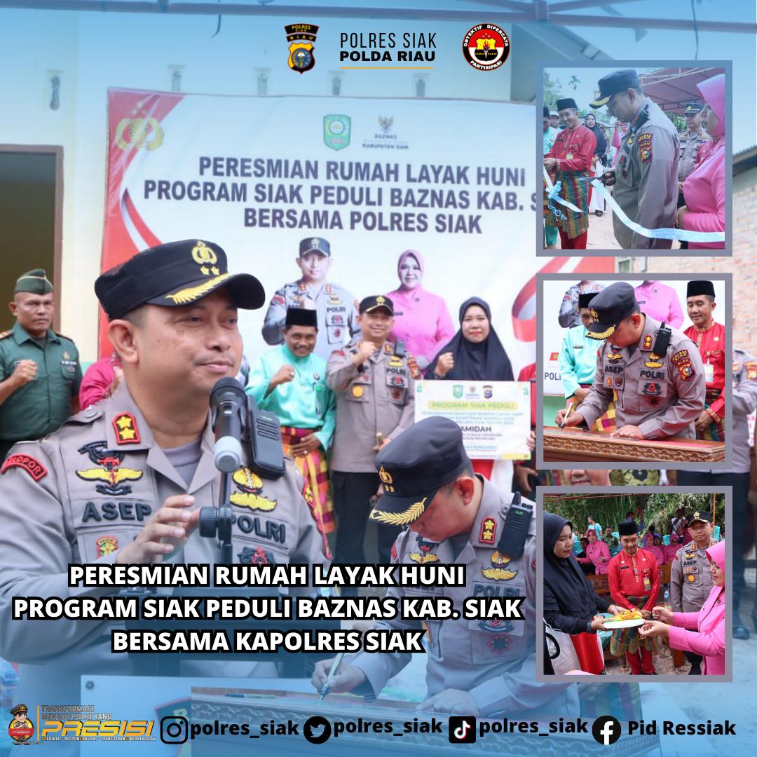 Kapolres Siak AKBP Asep Sujarwadi mengatakan Polres Siak juga mengucapkan terimakasih atas kerjasama yang terjalin dengan BAZNAS Kabupaten Siak sehingga Zakat yang telah diberikan oleh Personil Polres Siak ini dapat meringankan beban warga kita yang perlu bantuan yang diwujudkan dalam bentuk Rumah Layak Huni.