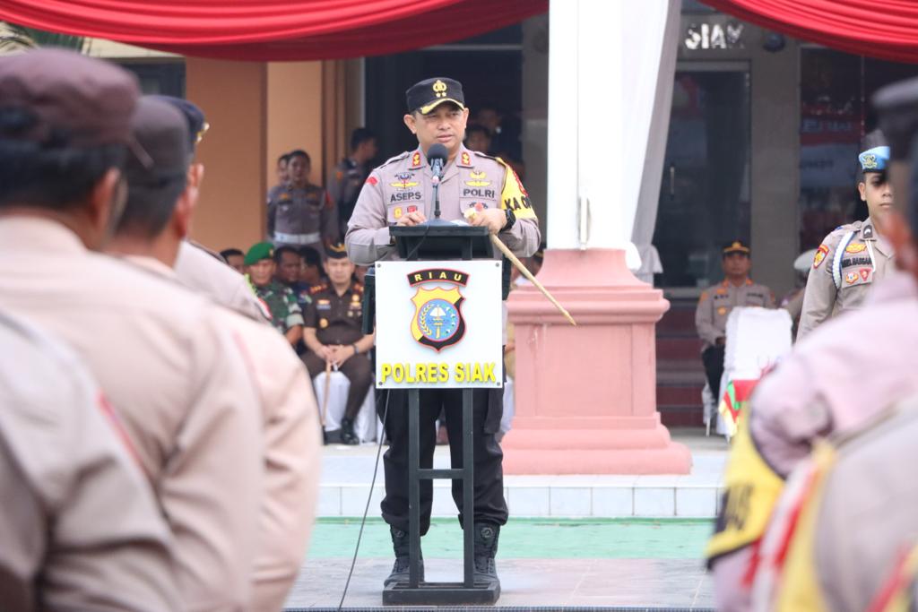 Apel gelar pasukan diikuti oleh Personil Polri Polres Siak, Personil TNI dari Kodim 0322 Siak, Satpol PP Kabupaten Siak.
