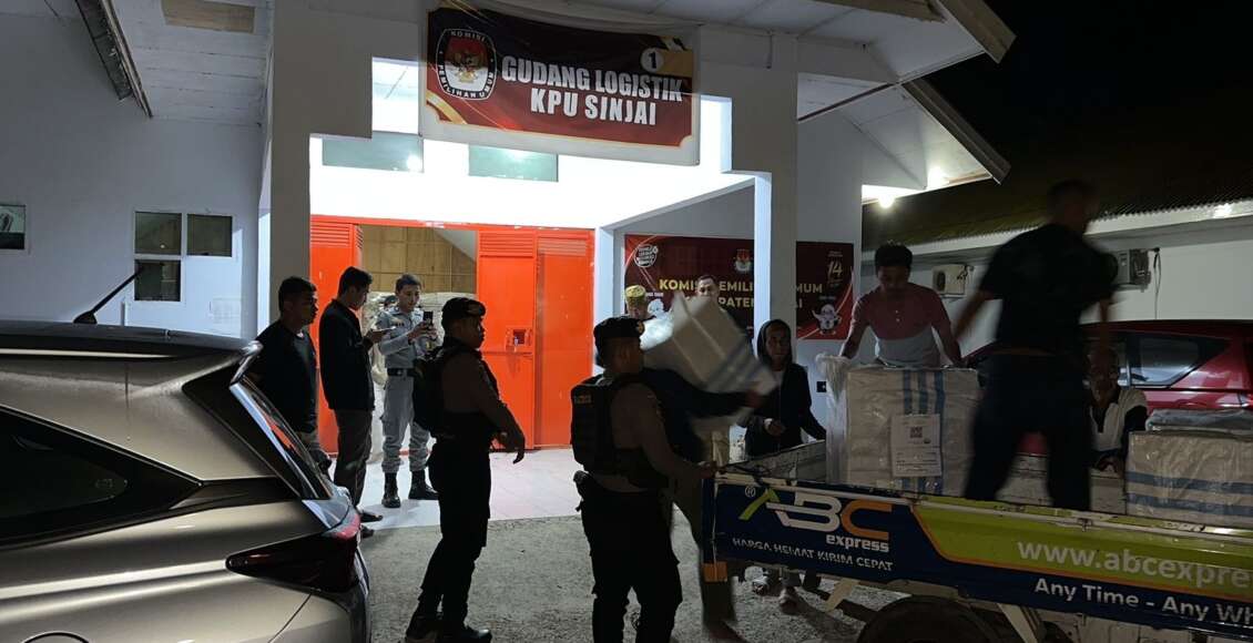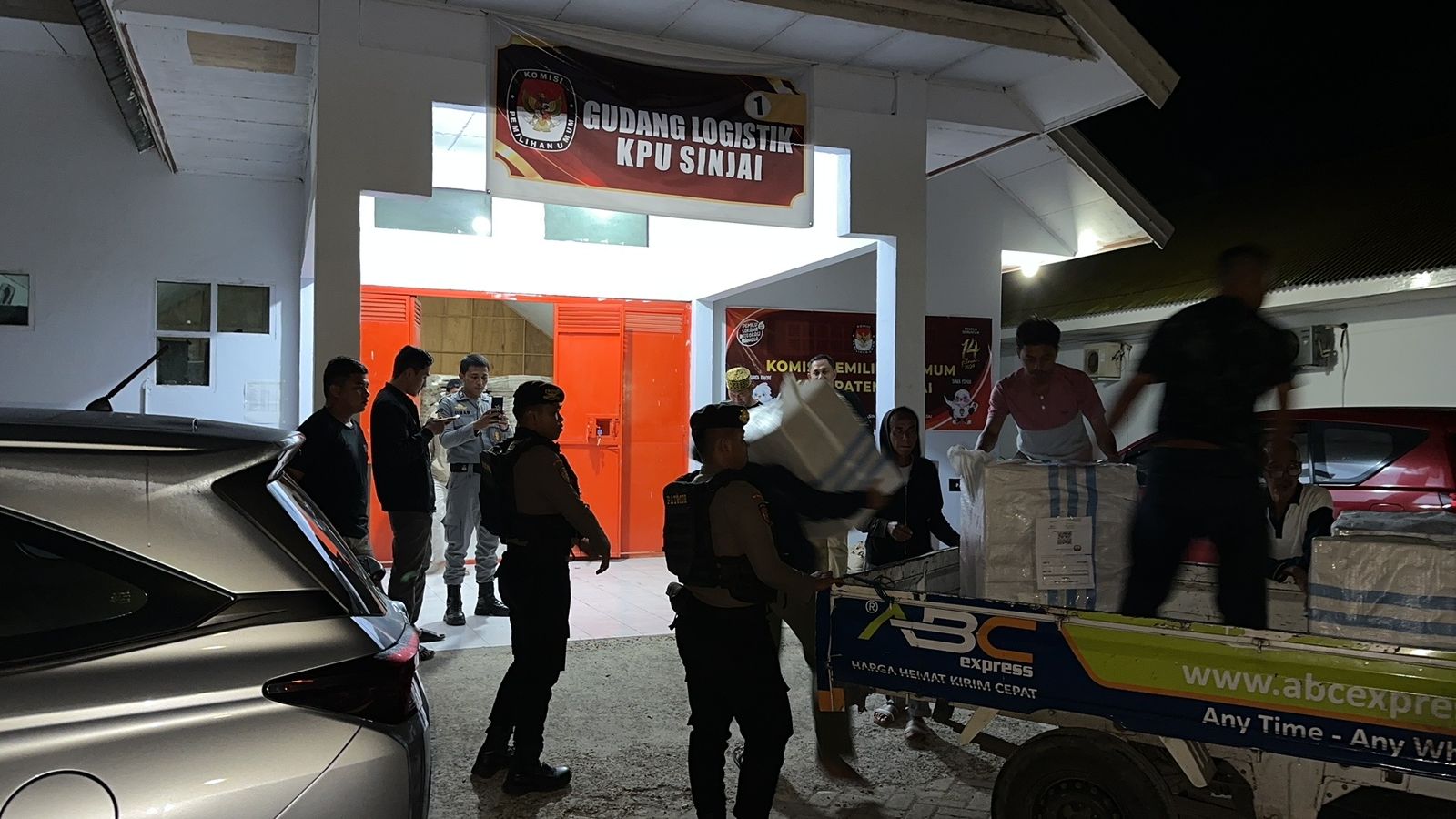 Tim gabungan dari Polres Sinjai berkolaborasi erat dengan petugas keamanan dari KPU untuk memastikan keberlangsungan pengiriman logistik pemilu ketempat penyimpanan yang telah ditentukan dalam keadaan aman.
