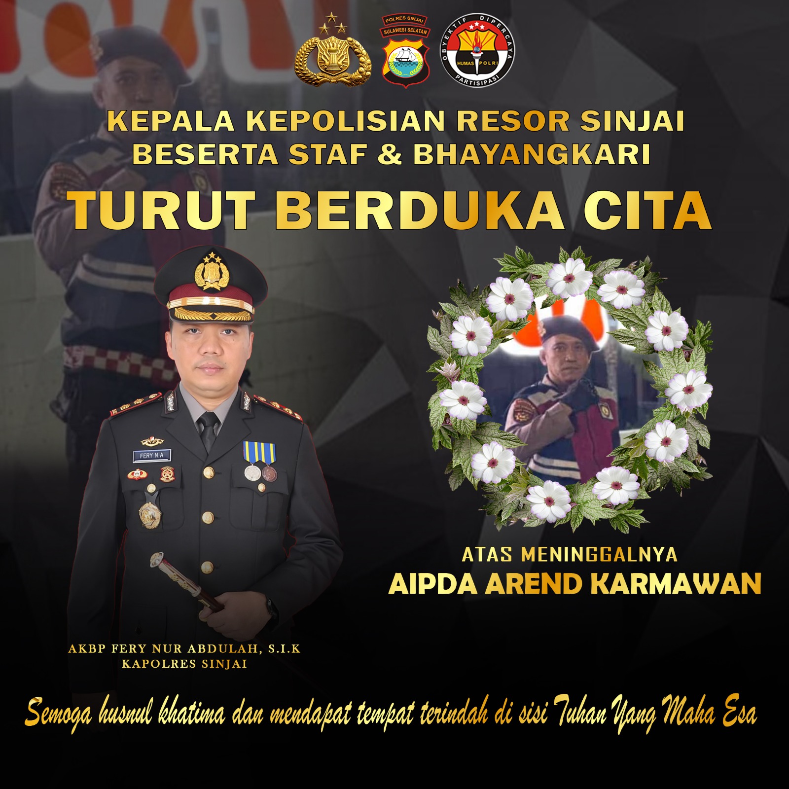 “Kami dari keluarga besar Polres Sinjai, Turut berduka cita yang mendalam, semoga amal ibadah Almarhum diterima Tuhan Yang Maha Kuasa Allah SWT dan keluarga yang ditinggalkan diberi ketabahan,” Ujarnya.