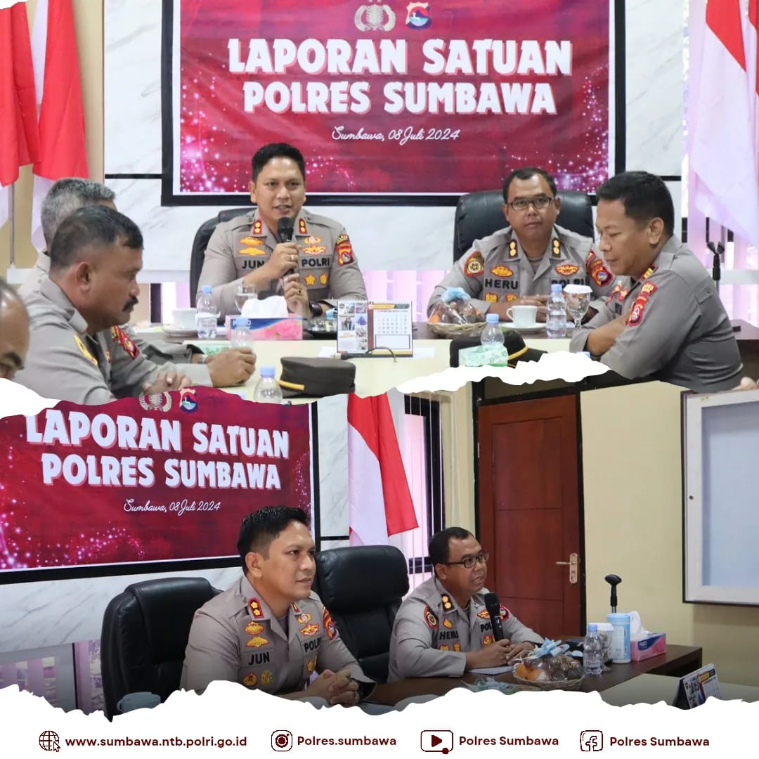 Kemudian dilanjutkan kegiatan Laporan Kesatuan (lapsat) serah terima jabatan Kapolres bertempat di Ruang Rupatas Polres Sumbawa. Dalam laporannya itu, AKBP Heru, memberikan laporan terkait situasi kamtibmas hingga laporan kinerja selama kepemimpinannya di Polres Sumbawa kepada AKBP Bagus Nyoman Junaedi.