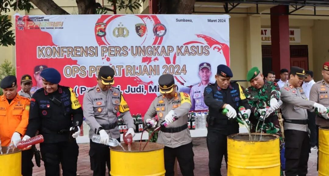 SUMBAWA,ikagawanews.id – Kepolisian dari Resor Sumbawa, Polda NTB, melakukan pemusnahan barang bukti miras yang berhasil diungkap selama pelaksanaan Operasi Pekat Rinjani 2024 oleh Polres Sumbawa.