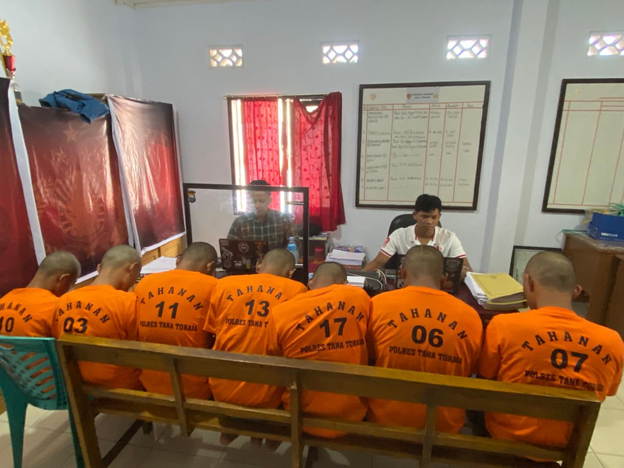 ”Ketujuh pelaku telah kami amankan di Polres Tana Toraja, serangkaian pemeriksaan juga telah dilakukan beserta barang bukti berupa 1 buah pahat, 5 karung pakan ternak, 1 unit mobil, 1 buah gembok, 1 buah flashdisk, dan potongan les papan kayu”, ungkap Kasat Reskrim