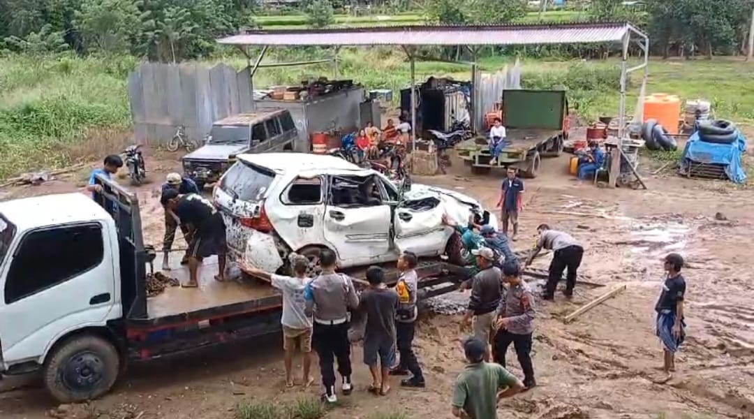 Pagi tadi gabungan TNI – Polri bersama Tim Sar dan warga sekitar melakukan pencarian dan pada pukul 11.30 unit mobil tersebut ditemukan sekitar 100 meter dari lokasi kejadian
