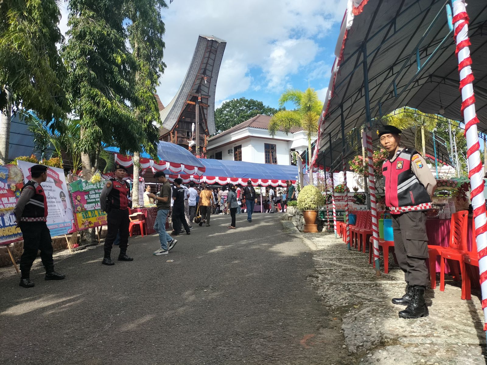 Untuk memastikan keamanan dan kelancaran kegiatan, Polres Tana Toraja menerjunkan 40 personel gabungan guna mengawal kedatangan rombongan sejak memasuki wilayah Kabupaten Tana Toraja hingga ke lokasi acara syukuran.
