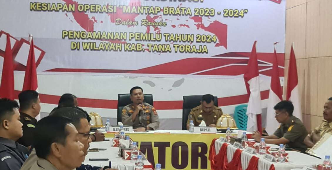 TANA TORAJA,ikagawanews.id – Kapolres Tana Toraja AKBP Malpa Malacoppo, S.H. S.I.K., M.I.K., didampingi para Pejabat Utama (PJU) melaksanakan rapat koordinasi kesiapan operasi mantap brata tahun 2023 – 2024 dalam rangka pengamanan Pemilu tahun 2024 di Wilayah Kabupaten Tana Toraja