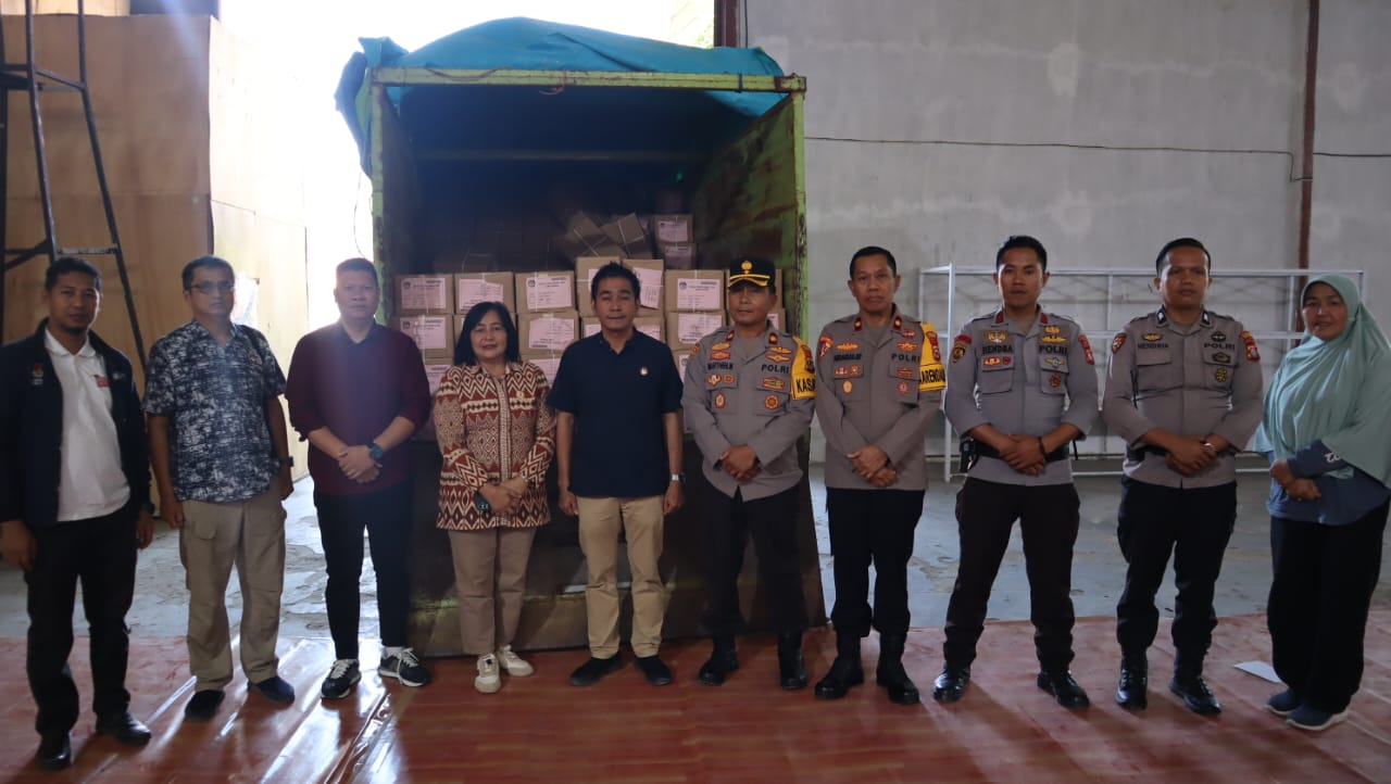 Kapolres Tana Toraja AKBP Malpa Malacoppo, diwakili oleh Kabag Ops KOMPOL Andarias BP, bersama personilnya melakukan pengawasan dalam proses pemeriksaan dan sortir surat suara guna memastikan keseluruhan logistik yang diterima dalam keadaan aman dan lengkap sebelum di inventariskan