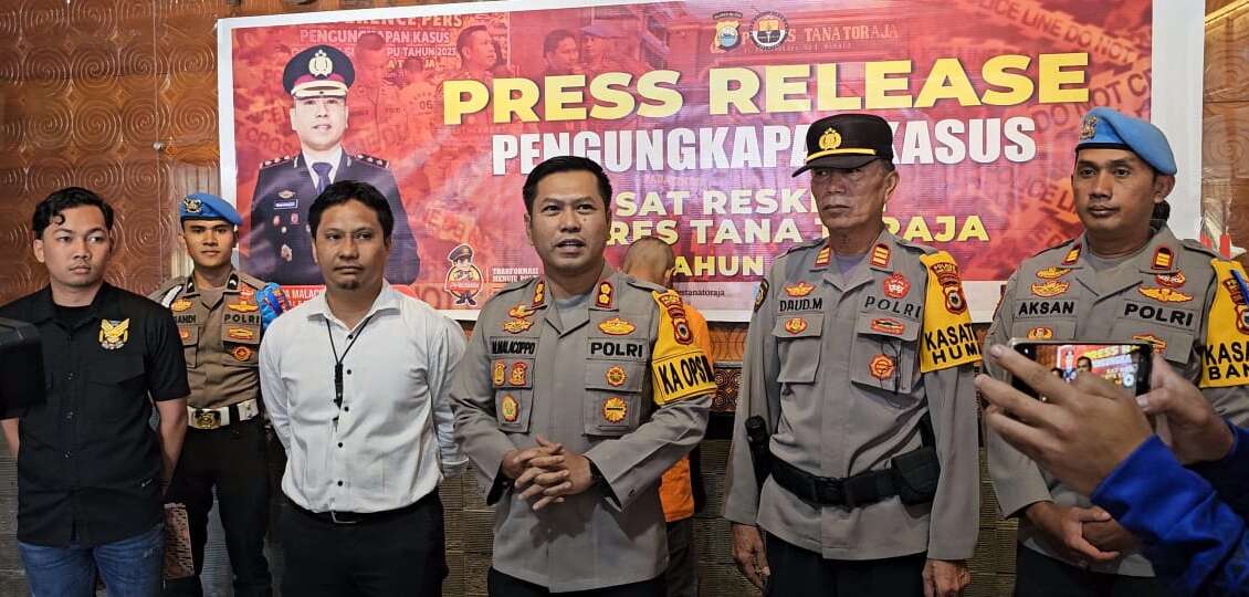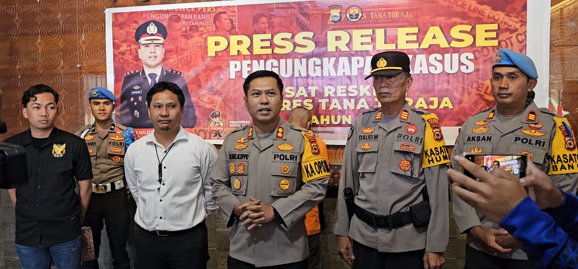 Pagi tadi Kapolres Tana Toraja AKBP Malpa Malacoppo, didampingi Kasat Reskrim AKP S. Ahmad. A, Kasi Humas AKP Daud Massangka dan Kasi Propam AKP Muh. Aksan Swardi, merelease pelaku beserta dengan barang bukti di ruang loby Mapolres Tana Toraja, Sabtu (2/3/24)