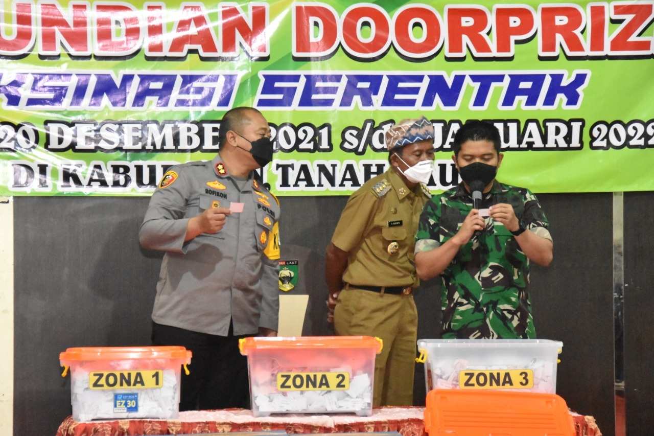 “Hari ini kami mengundi doorprize dengan hadiah utama 3 unit sepeda motor dan 18 buah kompor gas bagi warga yang divaksin pada tanggal 20 Desember 2021 sampai 03 Januari 2022 hari ini,” ucapnya.