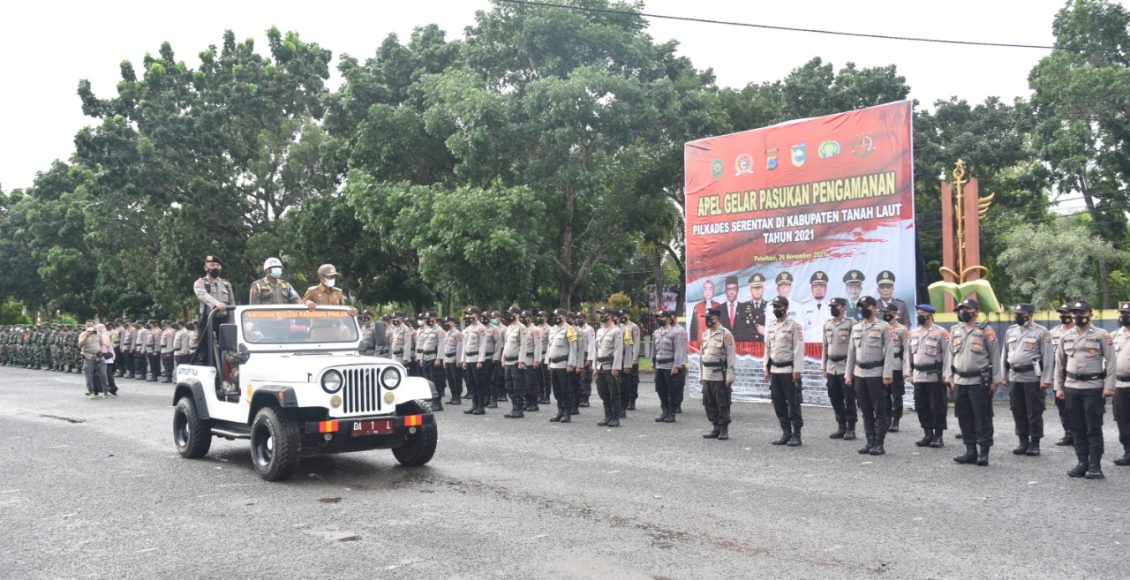 TANAH LAUT,ikagawanews.id – Jelang pelaksanaan Pemilihan Kepala Desa (Pilkades) serentak di wilayah Kabupaten Tanah Laut yang digelar pada tanggal 01 Desember 2021, Polres Tanah Laut melaksanakan Apel Gelar Pasukan dalam rangka Pergeseran Pasukan (Serpas), Senin (29/11/2021)