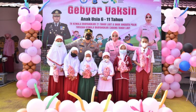 TANAH LAUT,ikagawanews.id – Yayasan Kemala Bhayangkari cabang Tanah Laut mengadakan Gebyar Vaksin Anak usia 6-11 Tahun di halaman sekolah TK Kemala Bhayangkari 21 Tanah Laut, Senin (17/1/2022).