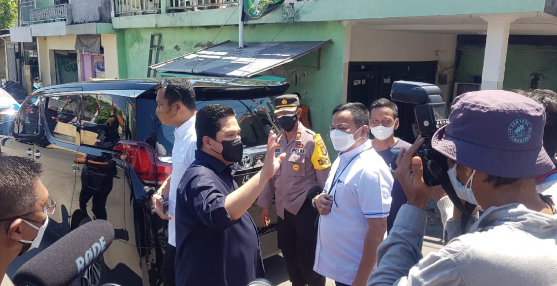 SURABAYA,IKAGAWANEWS.ID – Polres Pelabuhan Tanjung Perak melakukan pengamanan kunjungan Menteri BUMN Erick Thohir di Kampung Dusun Nambangan, Kenjeran, Minggu, 15 Agustus 2021.