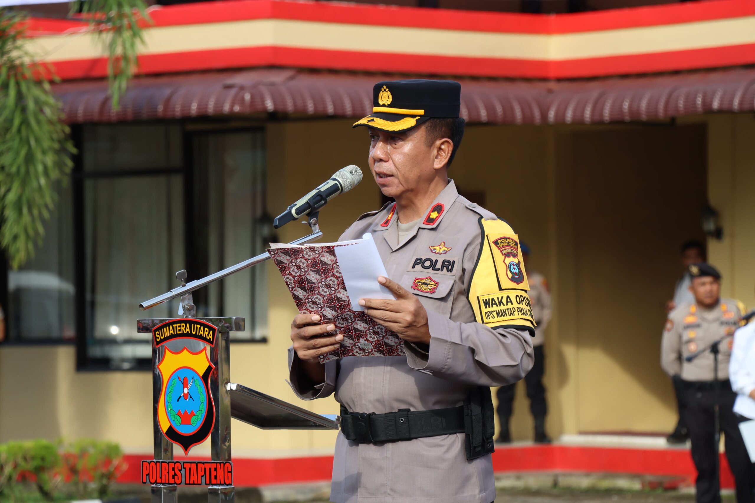 Kegiatan yang dilaksanakan di lapangan Apel Mapolres Tapteng tersebut dipimpin oleh Waka Polres Tapteng Kompol Soedarjanto dan dihadiri oleh Muspida Plus Kab. Tapteng.