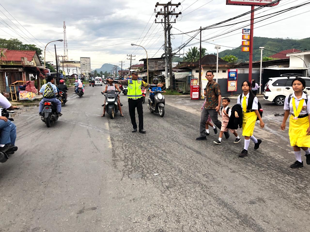 Polres Tapteng Gencarkan Strong Point Pagi Hari, Atur Lalu Lintas di Persimpangan Padat