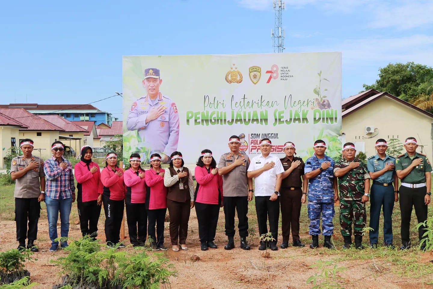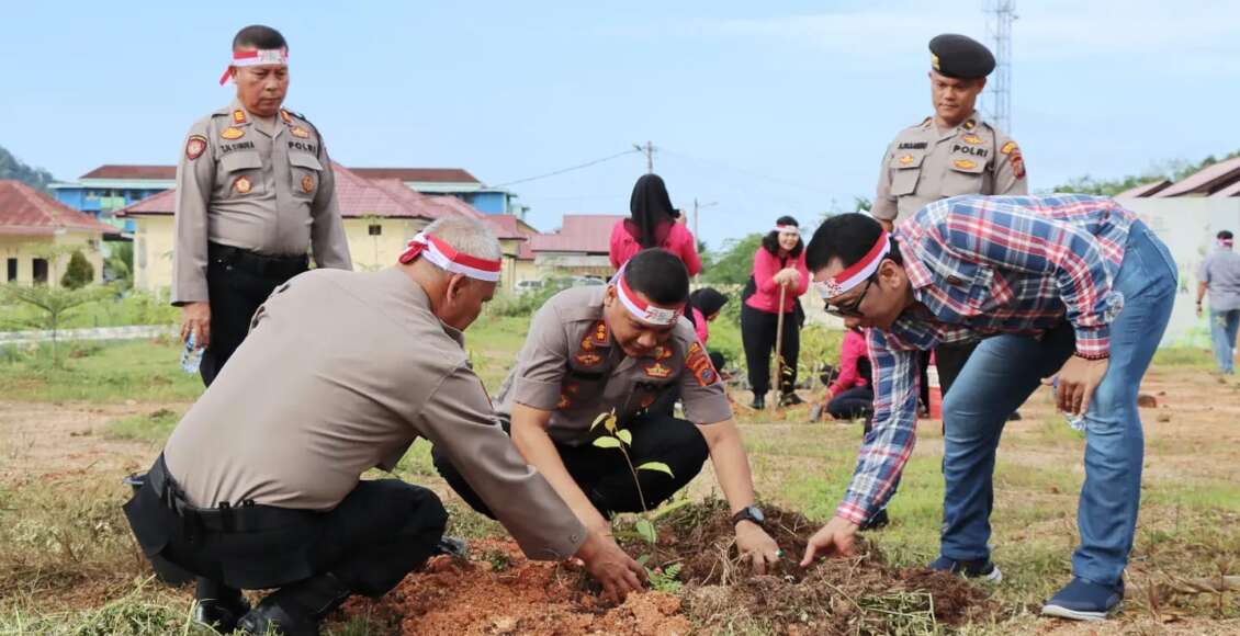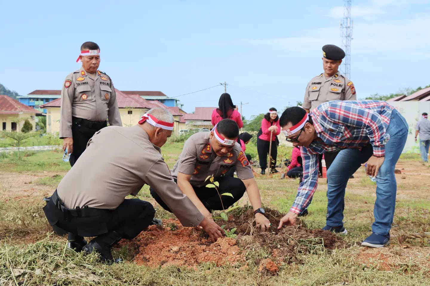 Polres Tapteng Ikuti Penanaman Pohon Secara Serentak : Polri Lestarikan Negeri, Penghijauan Sejak Dini