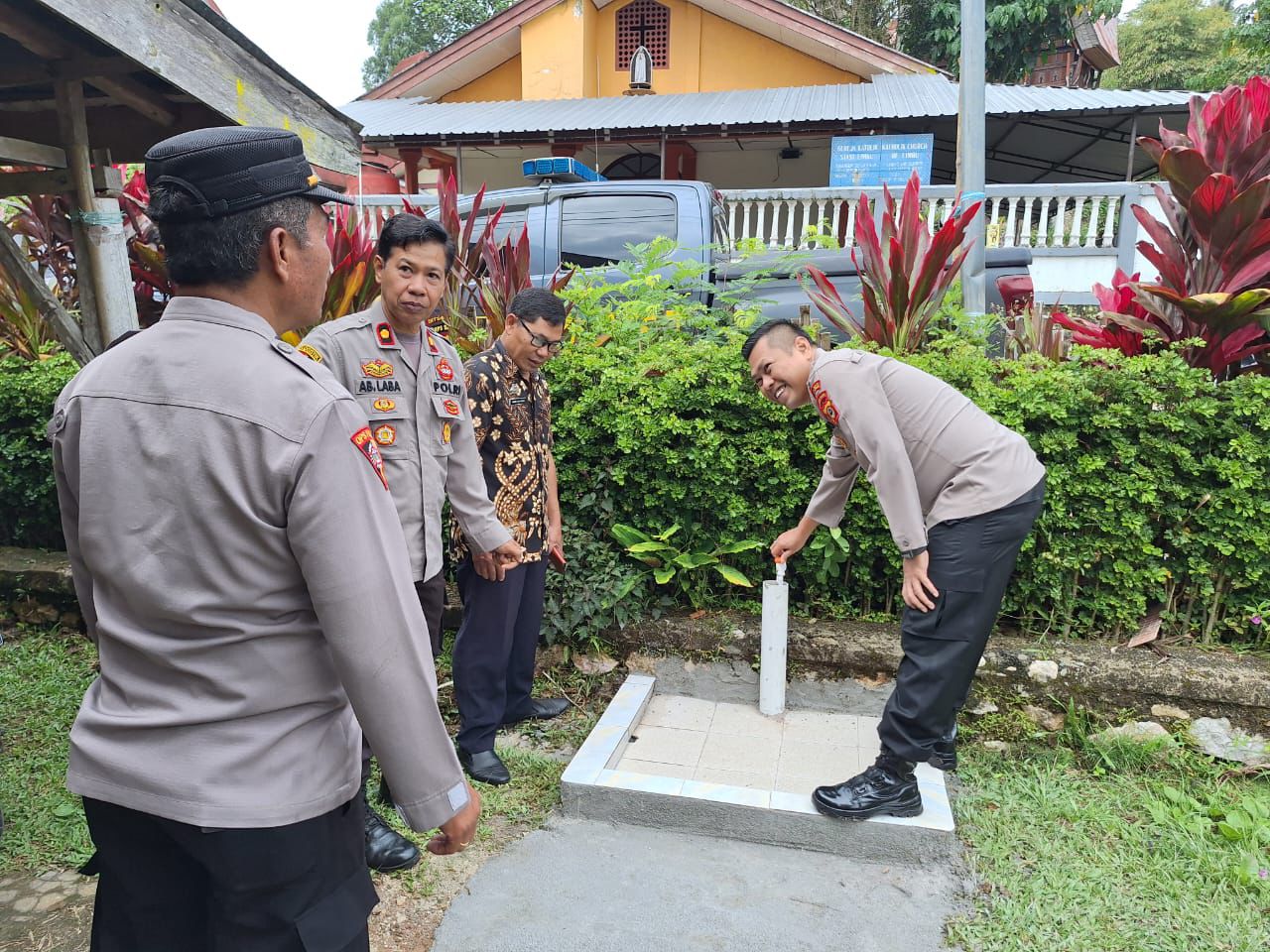 Setelah membagikan sembako kepada warga, Kapolres Tana Toraja melakukan pengecekan perbaikan toilet dan sumur bor, hasilnya sudah dapat digunakan dan di fungsikan.
