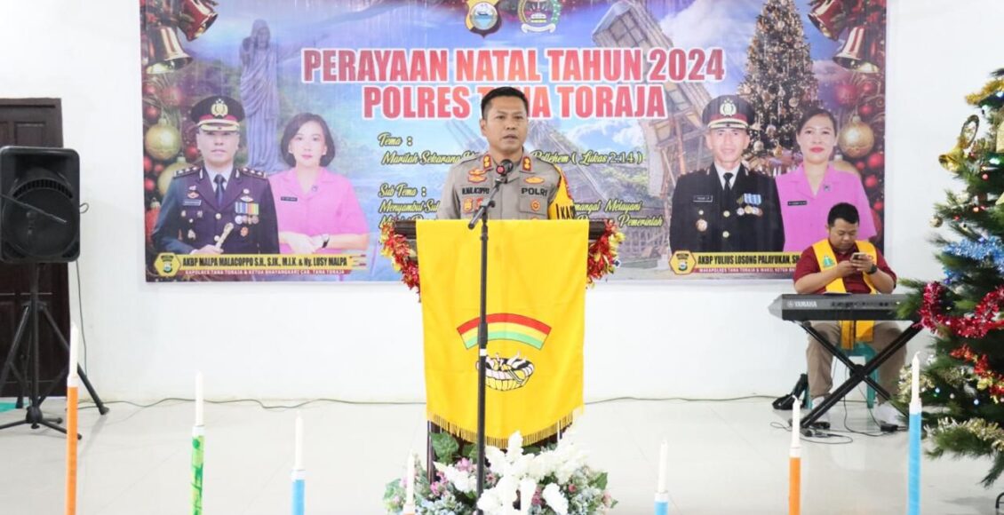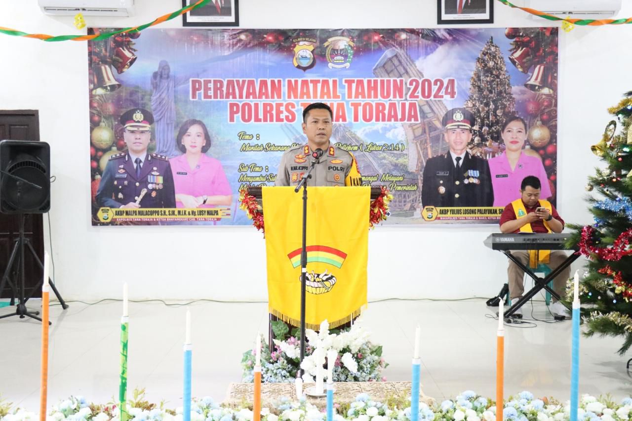Kapolres Tana Toraja AKBP Malpa Malacoppo, dalam sambutannya menyampaikan ucapan terima kasih kepada personil Polres Tana Toraja khususnya panitia Natal yang sudah menyiapkan kegiatan Natal saat ini. Ucapan terima kasih disampaikan bagi para tamu undangan dan hamba Tuhan yang telah telah hadir untuk meluangkan waktu merayakan ibadah Natal bersama keluarga besar Polres Tana Toraja.