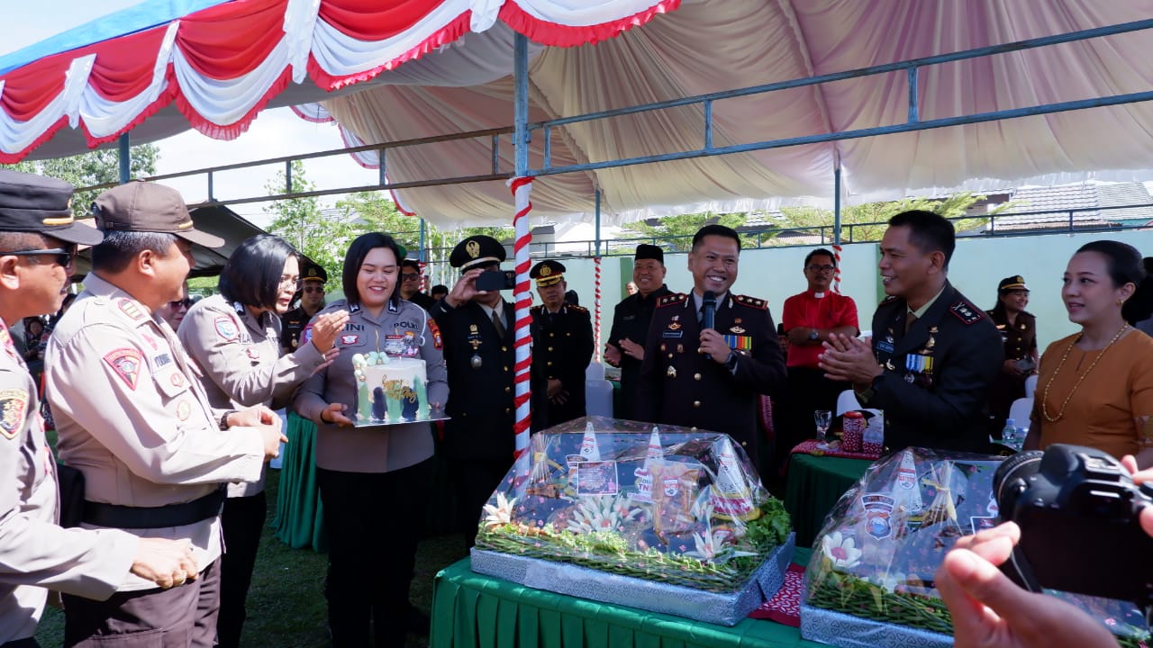 Dalam suasana kebersamaan dan keakraban ditunjukkan di Lapangan Kodim 1414/Tator Rantepao pagi tadi, keluarga besar Polres Tana Toraja berikan kejutan nasi tumpeng dan kue ulang tahun sebagai lambang persahabatan yang erat terhadap keduanya.