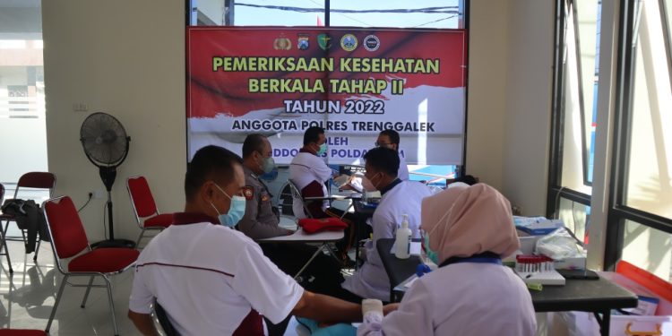 Trenggalek,ikagawanews.id – Kepolisian Resor Trenggalek kembali menggelar pemeriksaan kesehatan berkala (Rikkesla) bagi seluruh anggotanya. Rikkesla ini merupakan upaya Kepolisian dalam memberikan layanan kesehatan kepada anggotanya agar selalu prima saat menjalankan tugas memelihara Kamtibmas yang kondusif diwilayahnya. Selasa, (4/6).