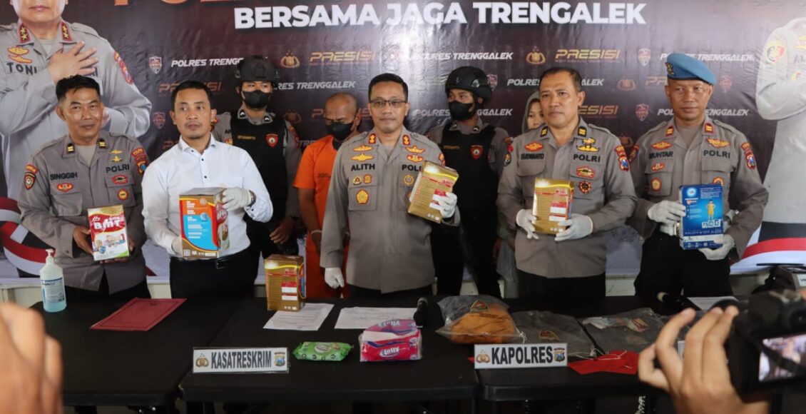Dari tangan tersangka Polres Trenggalek mengamankan sedikitnya belasan kaleng susu berbagai merk, sebuah handphone, uang tunai dan satu set kaos dan celana panjang.