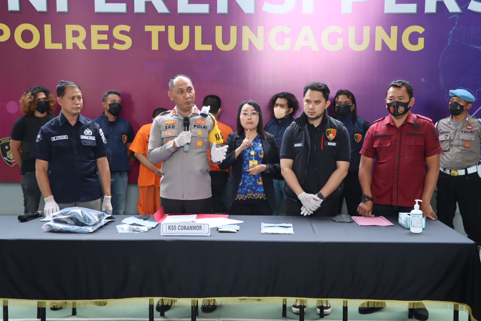 Hal ini disampaikan oleh Kapolres Tulungagung AKBP Eko Hartanto, SIK, MH, saat menggelar Konferensi Pers di Mapolres Tulungagung, Kamis (10/11/2022).