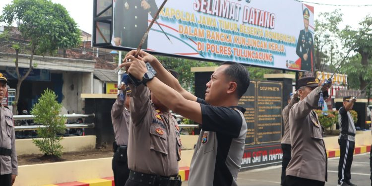 TULUNGAGUNG,ikagawanews.id – Untuk meningkatkan kemampuan (latkatpuan) anggotanya, Polres Tulungagung melaksanakan latihan pedang pora. Kegiatan ini dipimpin langsung oleh Wakapolres Kompol Dodik Tri Hendro Siswoyo, SH, SIK, MIK, dan diikuti oleh seluruh perwira Polres Tulungagung.