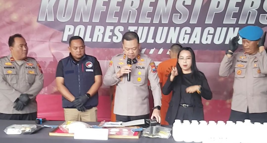 Kapolres Tulungagung AKBP Muhammad Taat Resdi mengatakan pelaku adalah MBB (23) asal Desa Ngranti Kecamatan Boyolangu Tulungagung. Penyidik sudah menetapkan tersangka kepada pelaku yang berhasil diamankan di sebuah rumah kos yang ada di Desa Plosokandang Kecamatan Kedungwaru kata kapolres dalam rilis di halaman Polres Tulungagung, Kamis (14-08-25).