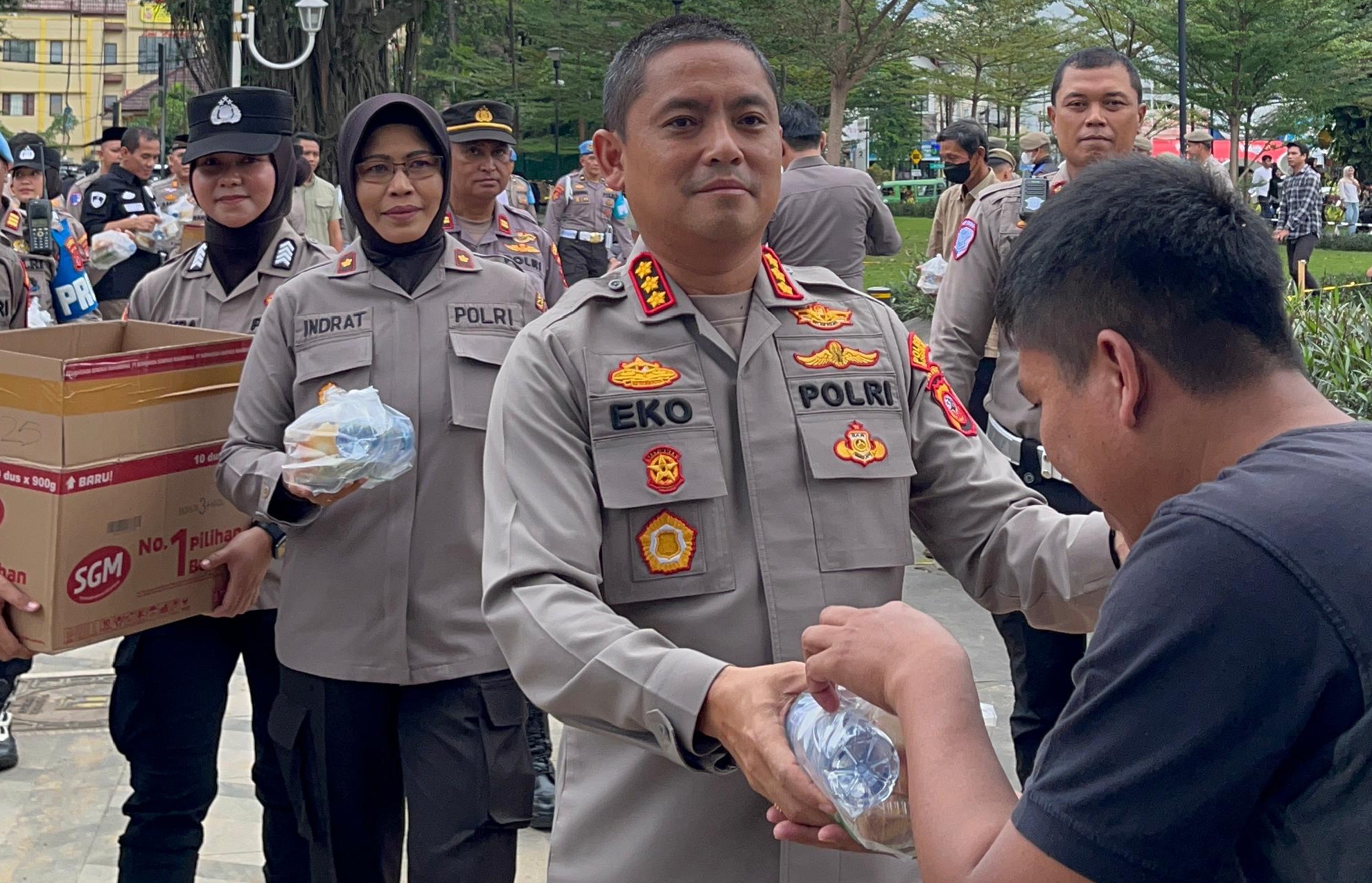 Polresta Bogor Kota Bagikan 200 Takjil kepada Masyarakat di Alun-Alun Kota Bogor